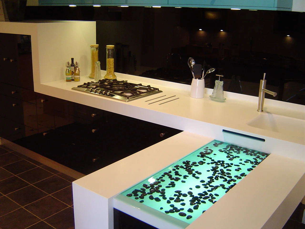 We work with all acrylics out there in the market from Corian to Staron to Hi Mac to Tristone to MiroStone to Valstone.